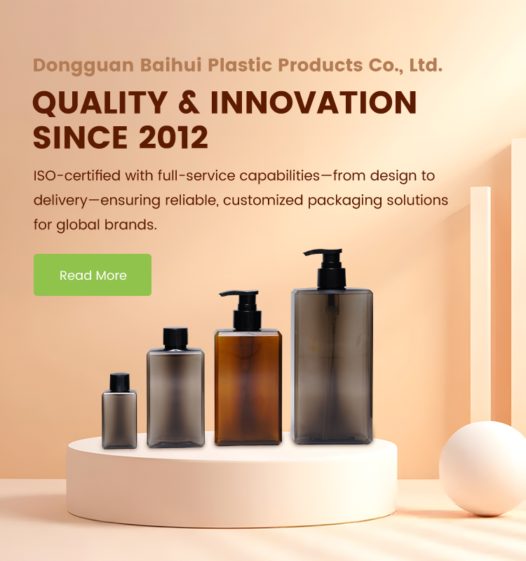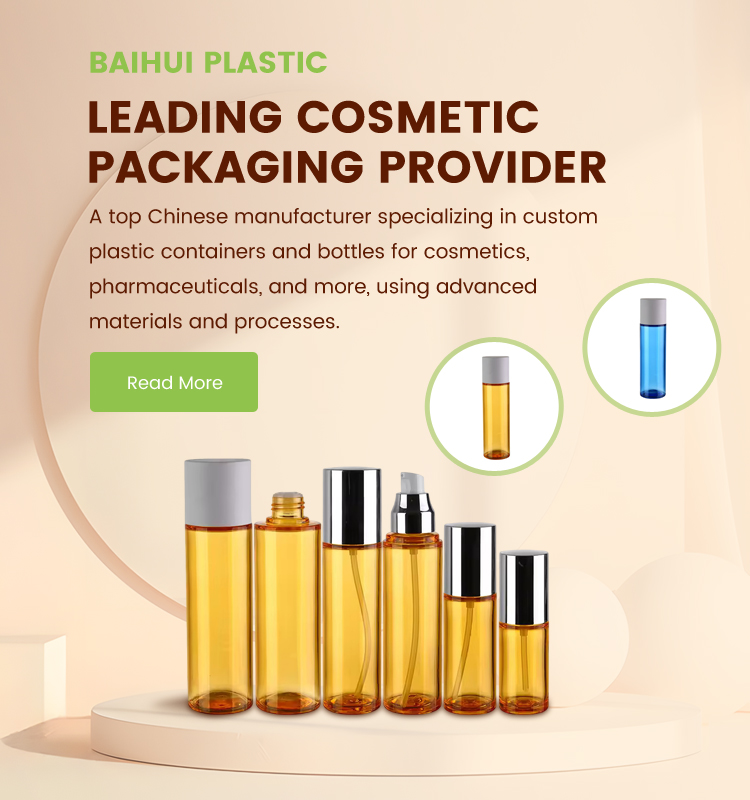 Dongguan Baihui Plastic Manufacturing Company is one of the biggest plastic cosmetic packaging providers in China.The products of the company are mainly including plastic perform container and bottles,caps,and so on,which basically are made of PET,PE,PP,PETG,PCTA, TRITAN, PCR and AS.These products are widely used in cosmetics area,and also used in pharmaceuticals,chemical,food and other areas.